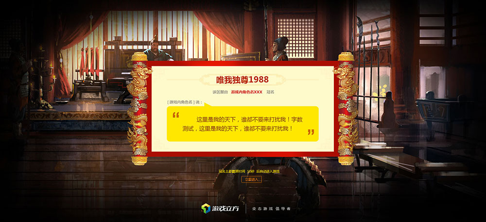 5、充值累计达到20000元的玩家,联系客服申请冠名或替换10000元的冠名,额外赠送玩家宣言,可额外自定义背景,先申请先得规则;